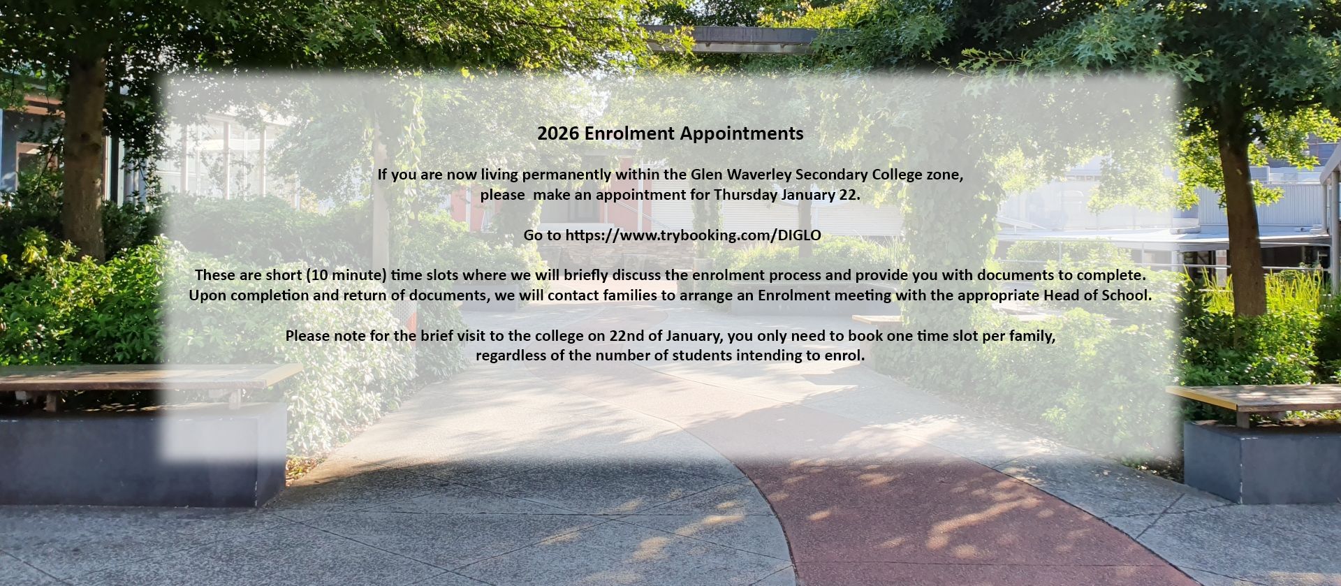 If you are now living permanently within the Glen Waverley Secondary College zone, please make an appointment for Thursday January 22. Go to